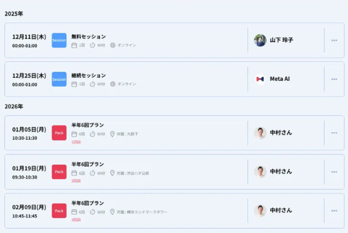 例えば、前項で紹介したMetaMentor CRMを使えば、セッションの音声をアップロードするだけで、自身のセッションを客観的に振り返ることができます。さらに、株式会社メタメンターが提供しているセッションマネージャーを活用すれば、セッション管理の効率化も可能です。
