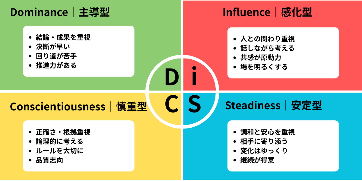 - DiSCは「性格」ではなく「行動スタイル」を見る理論