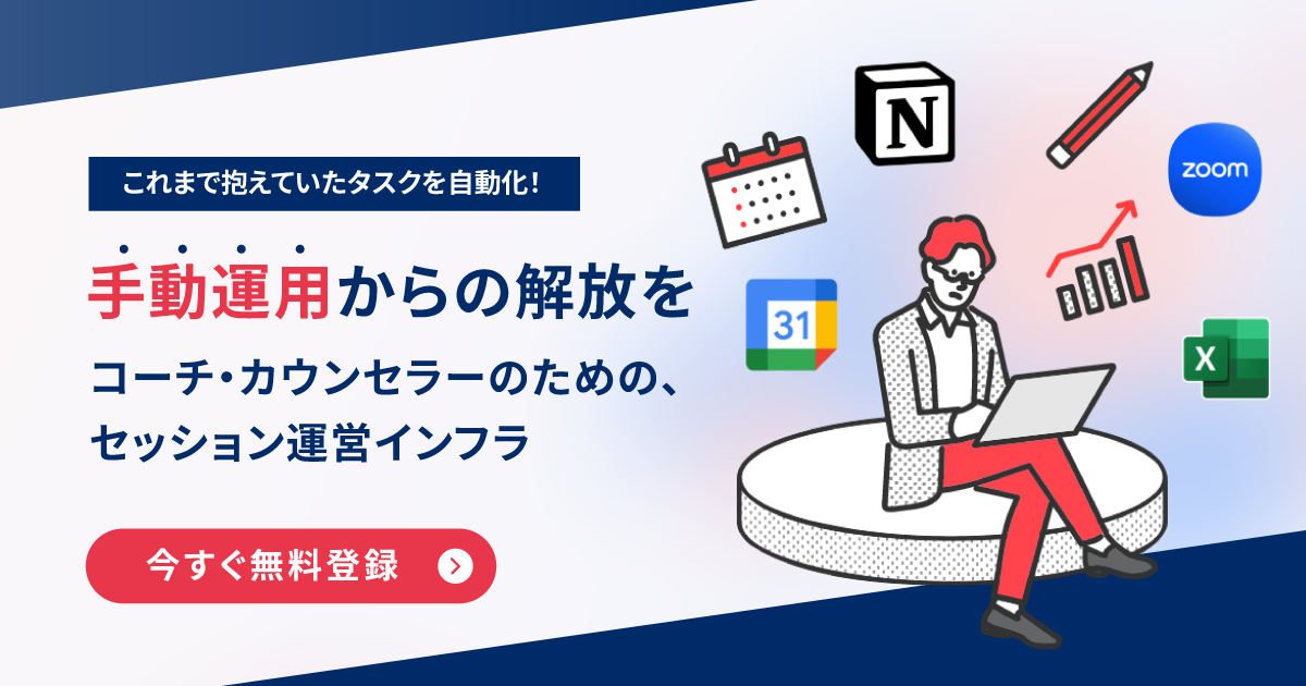 Googleカレンダーの同期やZoomのリンク発行も自動でできるMetaMentor セッションマネージャーについては、下記のバナーをクリックのうえご覧ください。